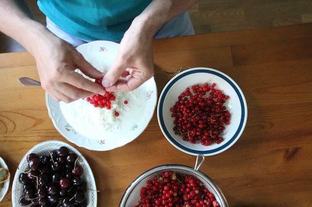 Our dinner tonight: milk soup with rice and fresh berries. Good!